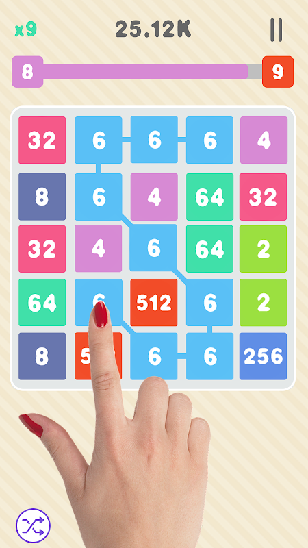 Connect values on the board to earn high scores! The longer your connection, the greater the score. You only have so many moves to make, so put some thought into each one as you go.