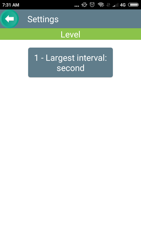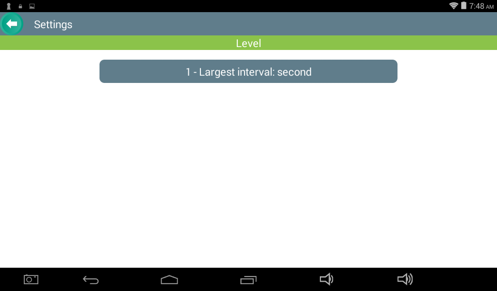 Five levels are available: each level introduces a larger melodic interval (from the second for level 1 to sixth for level 5).