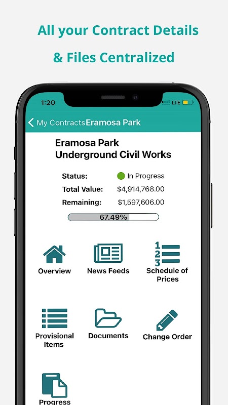 مناقصه های ساخت و ساز، سفارشات تغییر، گزارش های پیشرفت، فاکتورهای پیشرفت، گواهی های پرداخت، RFI ها، موارد ارسالی و بازرسی های سایت را خودکار و ساده کنید.