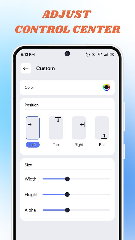 با Control Center: Simple Custom تعادل کامل سبک و عملکرد را تجربه کنید. با سفارشیسازیهای آسان، کنترلهای هوشمند و تنظیمات شخصیسازی شده، تجربه تلفن هوشمند خود را بدون زحمت افزایش دهید! اکنون دانلود کنید و دستگاه خود را واقعاً مال خود کنید!