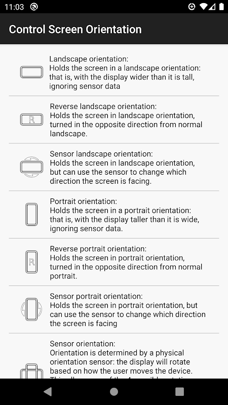 نسخههای قدیمی control screen rotation