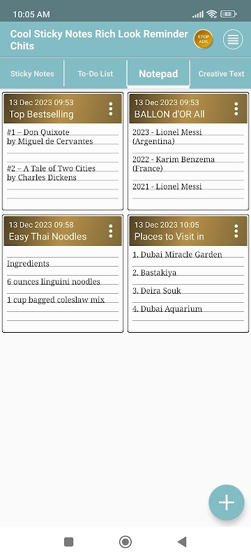 این یک برنامه اندرویدی رایگان برای یادداشتهای چسبناک با متن آسان و سازماندهنده چیتهای یادآوری با ظاهر غنی است.
