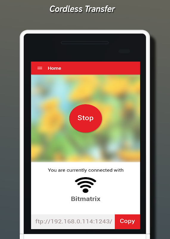انتقال بی سیم باعث می شود آندروید تلفن / پد خود را به یک FTP سرور بی سیم. بنابراین شما می توانید چندین فایل ها، پوشه ها، و یا کل دیسک های سخت به گوشی یا معاون یک عکس را کپی کنید. را فراموش کرده ام کابل USB خود را، فقط انتقال بی سیم به یاد داشته باشید چرا که آن را می توانید همین کار را انجام دهد.