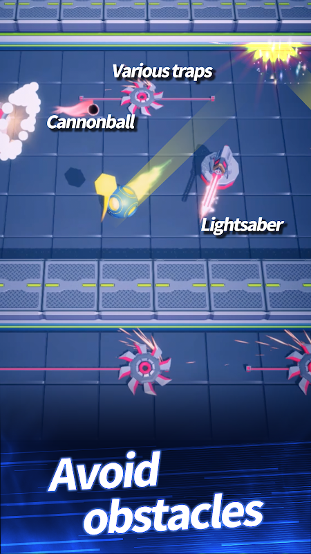 چهارم: از موانع نصب شده در سراسر نقشه اجتناب کنید و توپ ها را با استفاده از هسته بردارید.