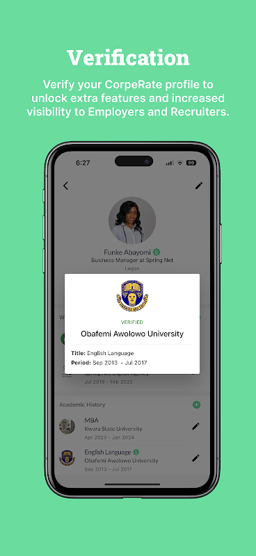 CorpeRate پلت فرم شغلی شخصی شما است که برای کمک به هر نوع حرفه ای در نیجریه برای دستیابی به اهداف شغلی و تجاری خود ایجاد شده است. این جامعه ای است که در آن می توانید شغل پیدا کنید و برای آن درخواست دهید، مهارت های کارآفرینی خود را به نمایش بگذارید، و چشم انداز شغلی خود را با منابع و شبکه ای قوی از افراد و مشاغل همفکر بهبود بخشید.