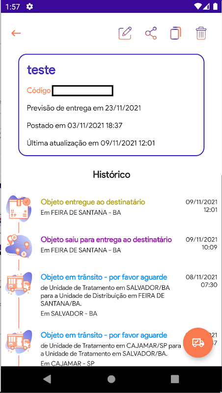 App que faz o rastreio de pacotes dos correios, gerando notificações a cada atualização.