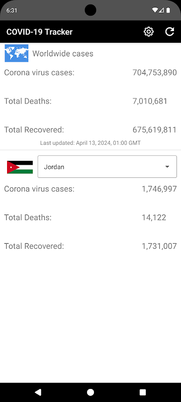 با استفاده از ردیاب کووید-۱۹ از آخرین نرخهای ابتلا به کووید-۱۹ بهروز باشید. برنامه ما دادههای بیدرنگ در مورد موارد تایید شده ارائه میکند و به شما کمک میکند از شیوع ویروس در منطقه خود و فراتر از آن مطلع شوید. با تصاویری ساده و قابل درک و اطلاعات قابل اعتماد، می توانید تصمیمات آگاهانه ای برای محافظت از خود و جامعه خود بگیرید. اکنون دانلود کنید و در مبارزه با COVID-19 مطلع باشید.