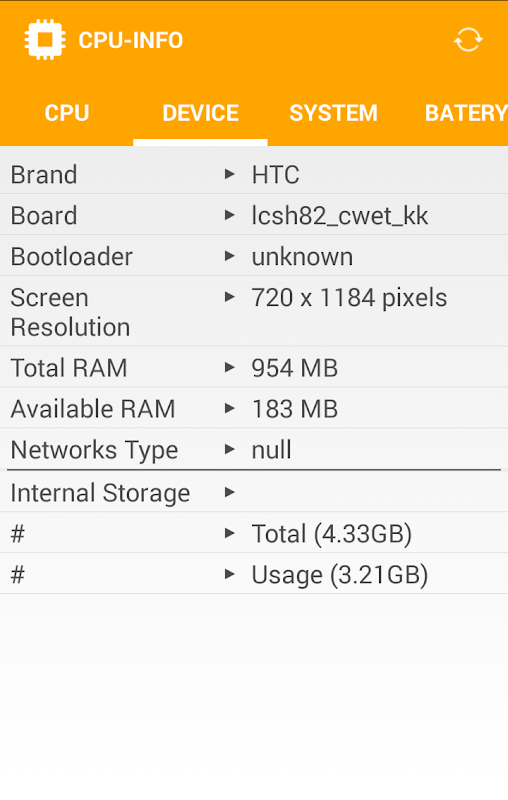 CPU-INFO برنامه ای که نشان می دهد اطلاعات در مورد گوشی خود را، مانند CPU، سیستم، دستگاه، باتری، و سنسور است.
