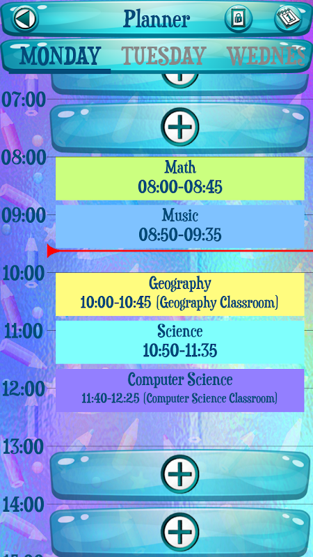 ♣♣♣ With the coolest school student planner applications all of your school assignments will be arranged by time and date. To start with tracking your classes and managing your school life, after installing the popular ☀Create Own School Planner☀ you should click on the planner button and add a subject. Select from the ones you have already had or create a new one. This can be done by inserting the name of a subject that you are suppose to have at that specific time. All the information you need about this class can be stored into the top school agenda. Choose the teacher who is giving classes and mark how many of them you have skipped so far. During the school year it happens that you cannot attend all of the lectures and that is why we have made it possible for you to keep track of number of them you have missed. When inputting the subject in a timetable you have the chance to choose what color it will be. Set beginning and ending time and don't forget to state in what classroom that specific subject is held. The best ☀Create Own School Planner☀ will become your favorite student agenda app and you will easily manage all obligations during the educational year.