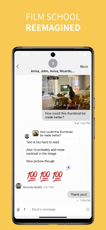 Chat with other creators and share resources, ideas, and videos on-the-go from anywhere in the world.