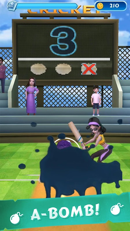 In Cricket Master, you need to hit different types of balls, such as curve balls, circle balls, fast balls or bouncing balls, accurately. In the middle of the screen, there is a white aiming circle to help you hit the ball. You have to hit the ball by tapping the screen immediately when the color of the circle turns to red, otherwise, you will miss the ball. However, remember to dodge the purple balls because the purple balls will blast and block the vision.