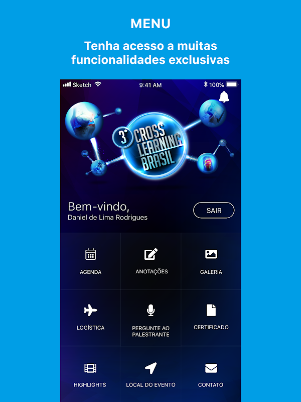 Nosso aplicativo possui todas as informações necessárias para que você acompanhe e não perca nenhuma informação sobre o evento. Algumas informações essenciais como agenda do evento, logística (vôos, hospedagem e transfer), galeria de imagens e vídeos em destaque podem ser utilizadas para melhorar sua experiência durante o evento.