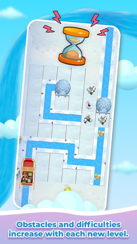 بلوک ها را حرکت دهید تا مسیر رودخانه ای ایجاد شود تا از کشتی به خط پایان عبور کنید