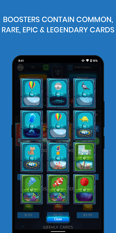 Get Collector Status and access numerous perks such as a special, one-time Booster pack containing four legendary cards, more daily minigames, free trades, DOUBLED level-up, mission, and referral rewards, along with the removal of all ads.