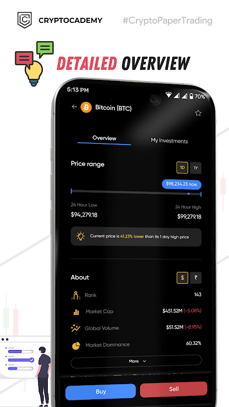 Cryptocademy مقدمه شما برای بازار ارزهای دیجیتال خواهد بود. این اپلیکیشن یک بازار سهام آزمایشی (شبیه ساز) است که در آن می توانید نقش یک معامله گر را بازی کنید. شما می توانید در مورد معاملات سهام و روش های مختلف مدیریت مالی که امروزه در دسترس شما هستند اطلاعات کسب کنید.