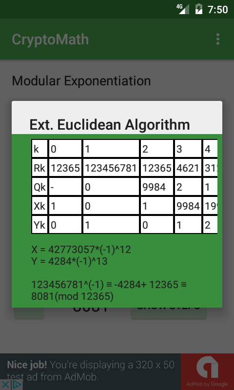 اول از همه افراد ریاضی مربوط به دانش آموزان ریاضی ابزار رمزنگاری که یک راه حل ساده به تعدادی از باقی مانده های خاصی از قدرت کلاس (سریع توان) عزم و اراده، و تعیین معکوس کلاس باقی مانده از الگوریتم اقلیدسی گسترش فراهم می کند ساخته شده است.