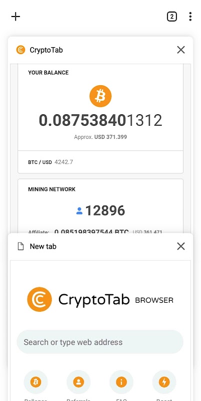 CryptoTab is an easy to use, fast and secure web browser. Designed for Android, CryptoTab Mobile brings you the familiar user experience of web browser combined with additional features from CryptoTab.