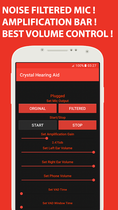 کریستال نرم افزار سمعک تقویت صدا ورودی پر سر و صدا از میکروفون مستقیم به هدفون خود را با صدای فیلتر شده و روشن به شما افزایش شنوایی است.
