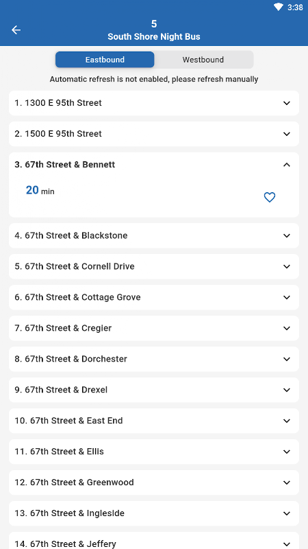 ردیاب اتوبوس و قطار شیکاگو، ردیابی لحظه لحظه ورود اتوبوس