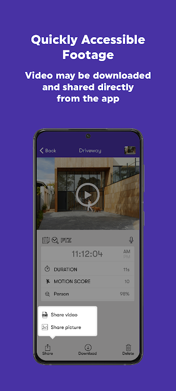 - تمام ویدیوهای ضبط شده را در یک CUBE Cloud امن خارج از سایت ذخیره کنید. ویدیو را مستقیماً از برنامه دانلود و به اشتراک بگذارید.