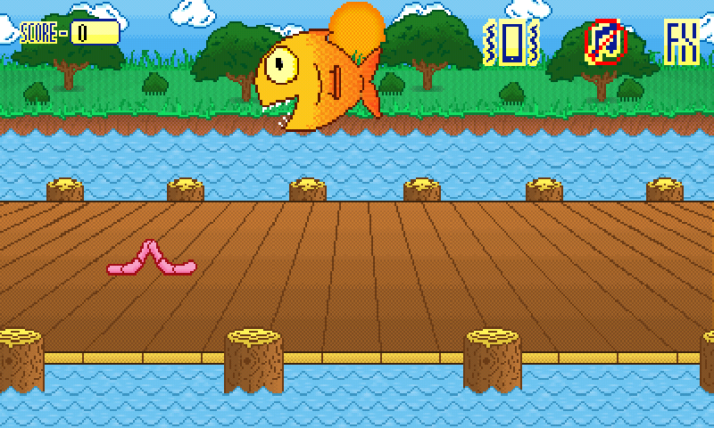 The player has to control CUC, a worm that, through his special ability of double-jump, tries to escape from the sharp teeth of the fish that want to eat him up.