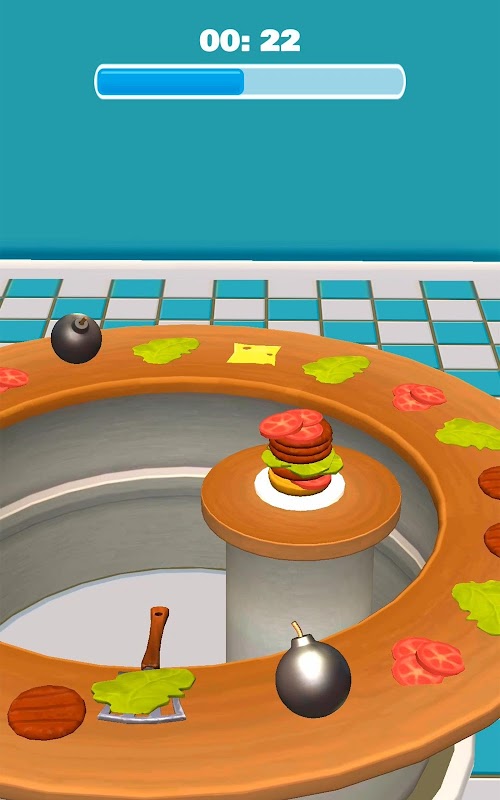 to make the multi-layer burger and beat the clock! But beware! There are bombs you must avoid with your spatula! Ready? Steady? Go!