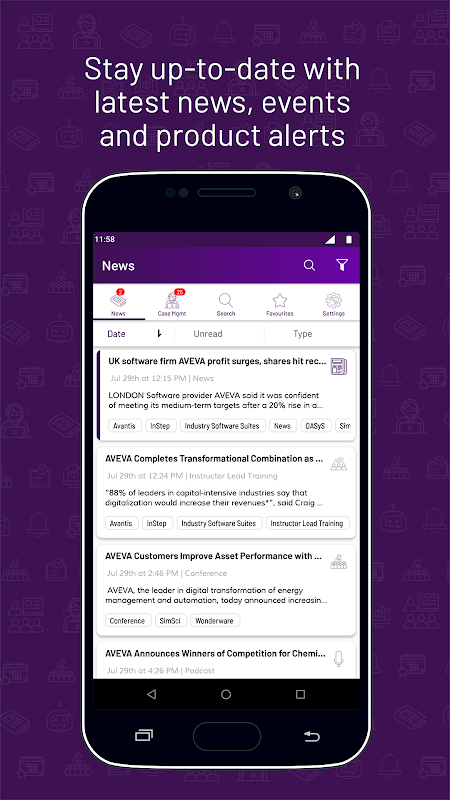 پشتیبانی از مشتری AVEVA FIRST یک برنامه کاربردی برای دستگاه های Android Phone و Tablet است که دسترسی کاربران به خدمات پشتیبانی آنلاین را آسان می کند.
