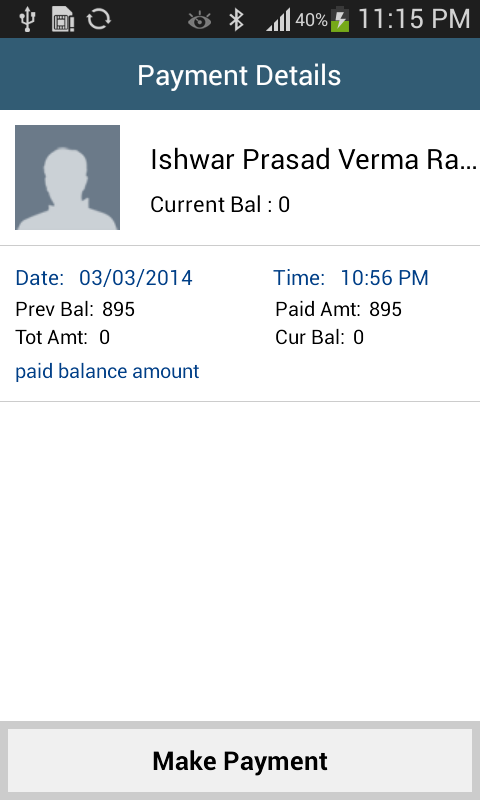Payment Records: All payments entries list like call history, user can see a particular customer's all payment details by selecting him in the list.
