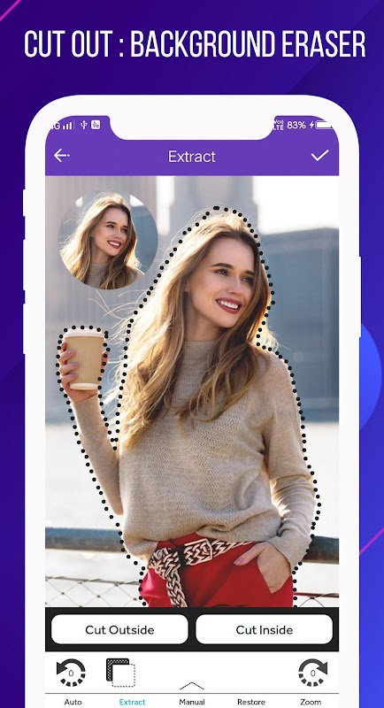 Cut ? what you need, indicate line where to paste the pic, and the app will do the rest.Auto photo cut paste: background eraser& changer can erase and set Background fast.