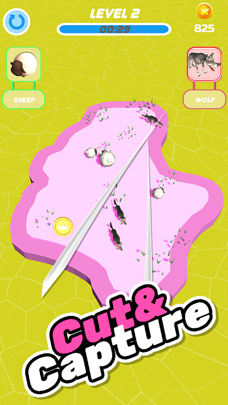 دقت- زیرا شما آخرین نجات دهنده گوسفندان هستید! با کشیدن انگشت یا ضربه بر روی زمین ، قطعه ای را که می خواهید برش دهید ، حداقل یک گوسفند را نجات می دهد و همه گرگها به زمین می افتند.