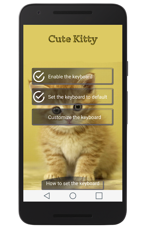 ☺ Try our new kitty keyboard apk with stylish skins and sound effect that will put a smile on your face every time you are typing a text message! Try all the cute themes and set as default the one you like the most! With these adorable keypad designs you won't even recognize your mobile devices! Improve your texting experience and customize phones with this easy to use software! ☺