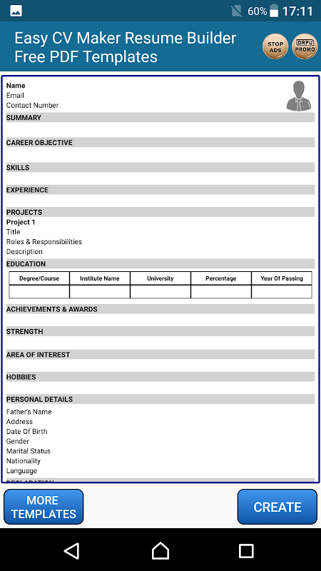 برنامه CV Maker & Resume Builder با قالب های قالب های حرفه ای برای ساخت PDF