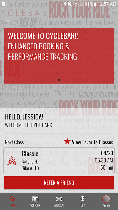 Plan and schedule your classes at CycleBar from your Mobile device.