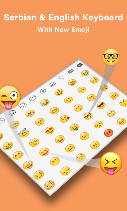 صفحه کلید صربی دارای 2000 نماد شکلک، شکلک های زیبا، نمادهای برچسب های شیک است.
