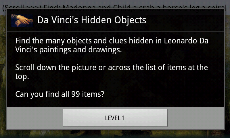 Find the many objects hidden in Leonardo Da Vinci's paintings and drawings.