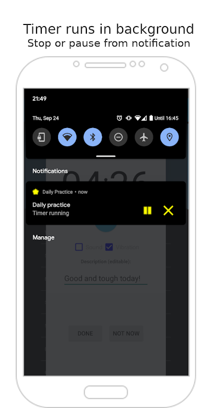 tim تایمر تمرین را مستقیماً از اعلان مکث یا متوقف کنید