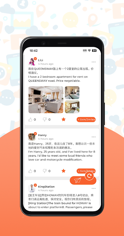 کاربران پست هایی را در مکان فعلی تلفن خود منتشر می کنند، مانند دوستیابی، کالاهای استفاده شده، تبلیغات،