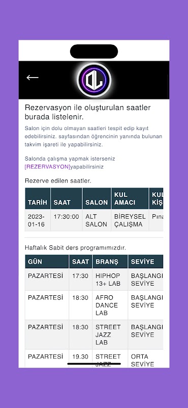برنامه ما یک سیستم برای اعضای مدرسه رقص آزمایشگاه رقص است.