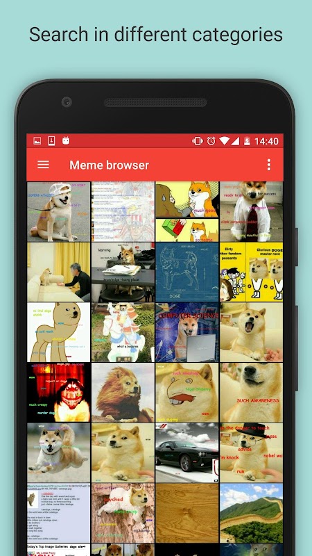 Navigate through categories of memes to find and save what you like.