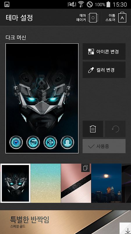 3. Changing icons: able to change every icon (press and hold each icon to change individually).