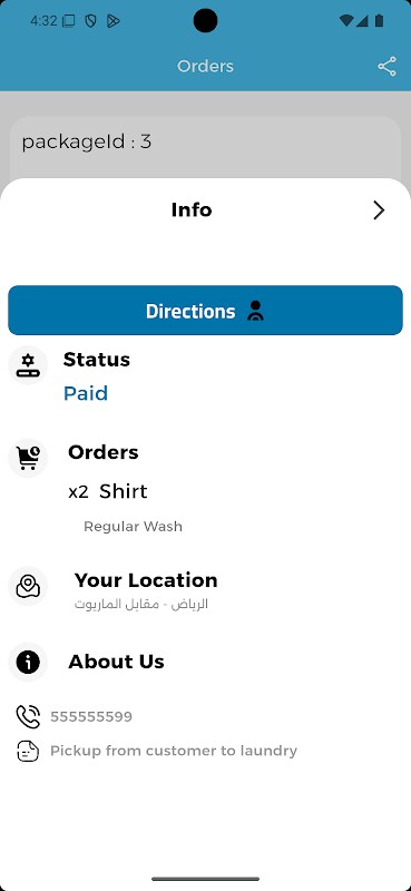 پذیرش آسان کار: وظایف محول شده را به وضوح از مدیر ناوگان دریافت کنید، با جزئیات کامل سفارش و مکان دقیق مشتری و لباسشویی.