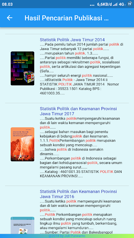 Aplikasi ini akan menampilkan publikasi-publikasi yang relevan dengan apa yang dicari pengguna dan pengguna dapat mengunduh publikasi tersebut.