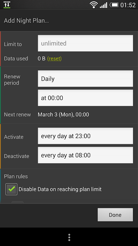 Monitor your Mobile Data - setup Day / Night / Month limits and scheduled tasks