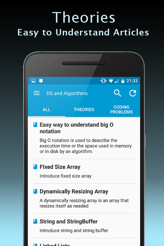 هر بخش شامل یادداشت تئوری برای کمک به کاربران برای درک مفاهیم و چند مشکلات برنامه نویسی به منظور بهبود آشنایی خود را به الگوریتم و یا ساختمان داده. بسیاری از مشکلات برنامه نویسی از Leetcode انتخاب و اجرا شده توسط توسعه. برخی از مشکلات راه حل های متعدد و مقایسه POS و crons از الگوریتم های مختلف.