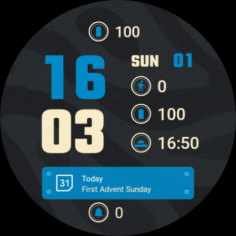 حاوی 6 پیچیدگی قابل تنظیم برای ساعت Wear OS. داده های مورد نیاز خود را روی صفحه ساعت دریافت کنید. صفحه ساعت با قابلیت تنظیم بالا