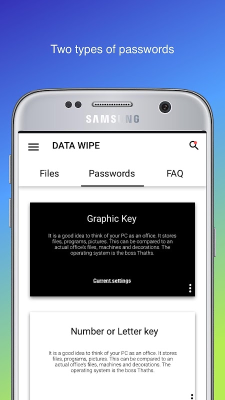 ★ Data Wipe Screen Locker is a specially designed app that can wipe data from your phone during an emergency situation.