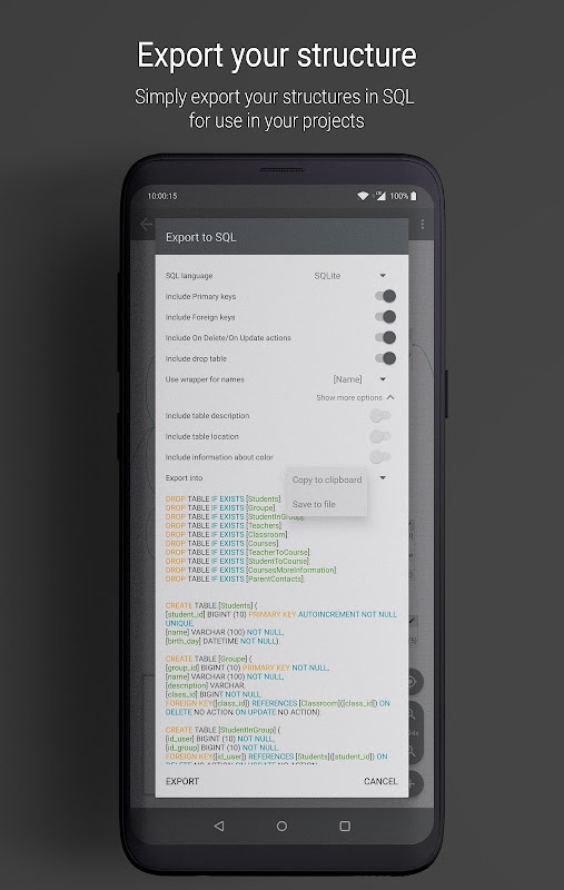 برای ایجاد SQL کافیست روی یک دکمه ضربه بزنید و از SQL در پایگاه داده خود استفاده کنید.