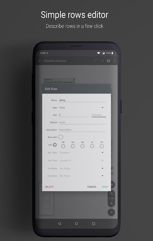 می توانید جداول ، کلیدها ، ستونها را ایجاد کرده و پارامترها ، رنگ ها را برای آن و بسیاری دیگر تغییر دهید.