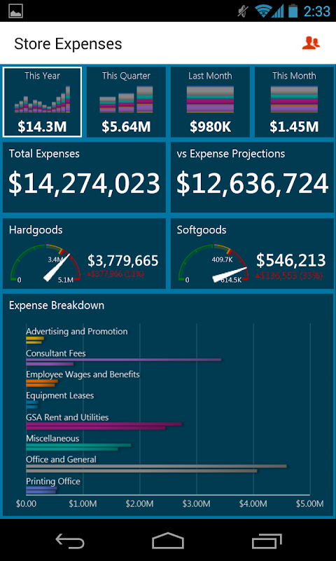 Access enterprise data through your mobile device quickly, effectively and securely. Datazen for Android allows you to connect a Datazen Server and access KPIs and Business Intelligence dashboards based on Excel, SQL Server, SharePoint and other data sources.