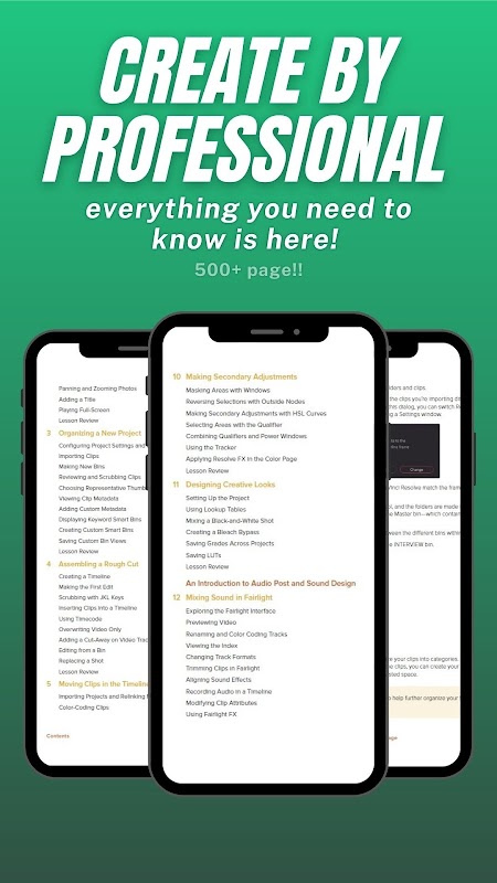 This app offers a comprehensive set of tutorials and courses that cover the basics of video editing, color grading, and audio mixing using DaVinci Resolve software. You'll learn how to import, edit, and export videos, as well as how to apply color correction and grading to enhance the visual aesthetics of your footage.
